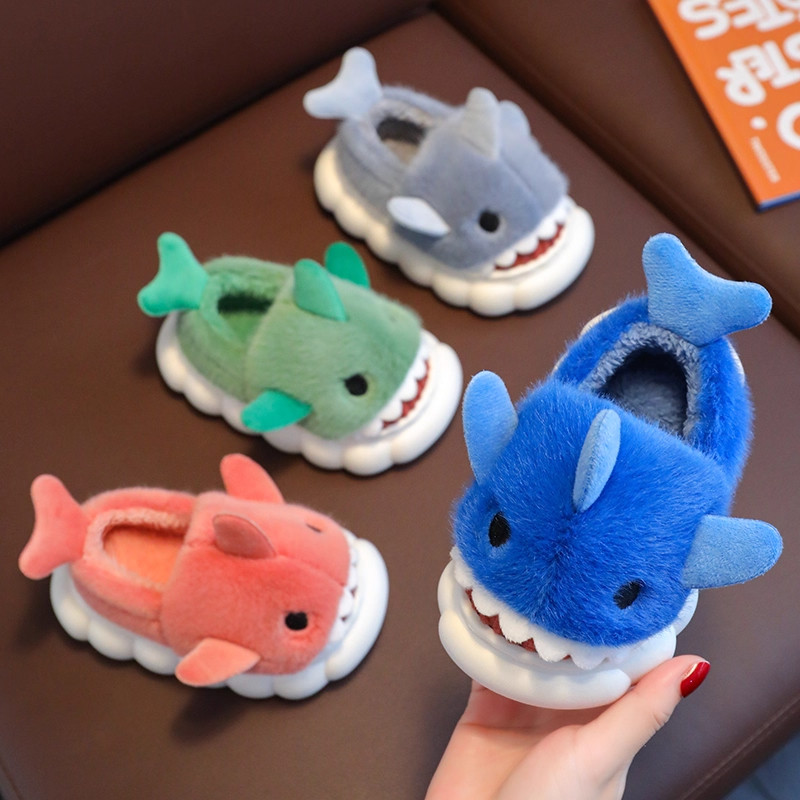 儿童棉拖鞋男童可爱毛毛鞋冬季室内防滑厚底保暖棉鞋卡通红色外穿