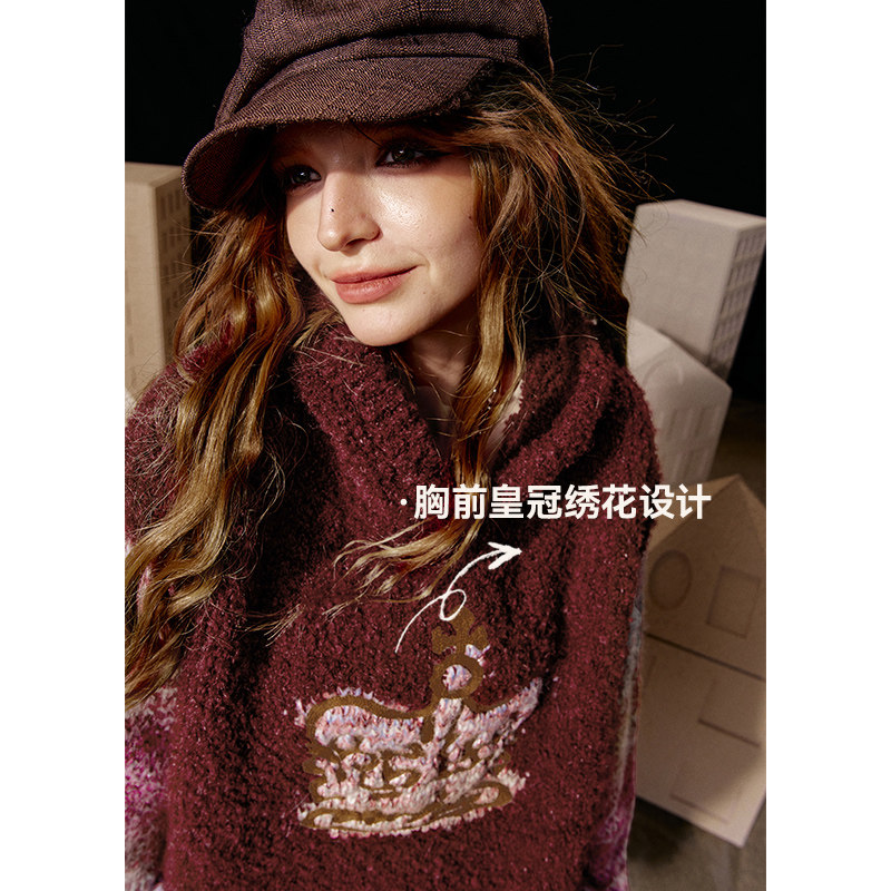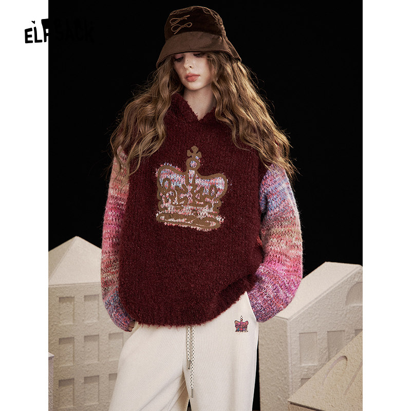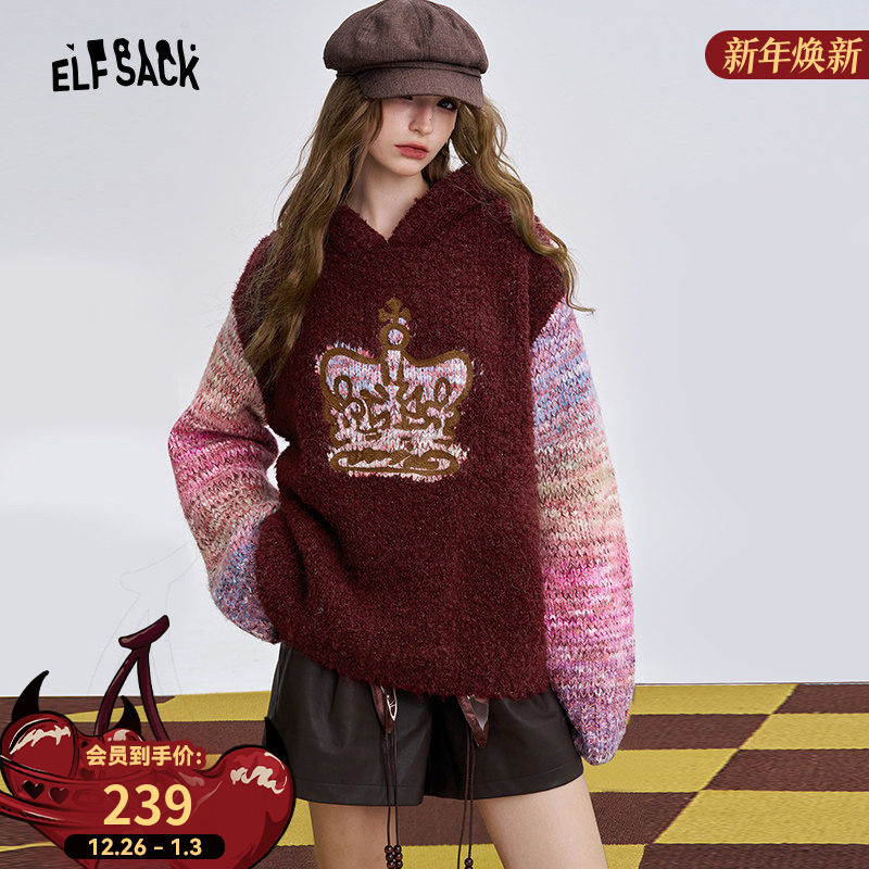 妖精的口袋皇冠提花慵懒风连帽毛衣女2025冬新款甜美软糯新年穿搭
