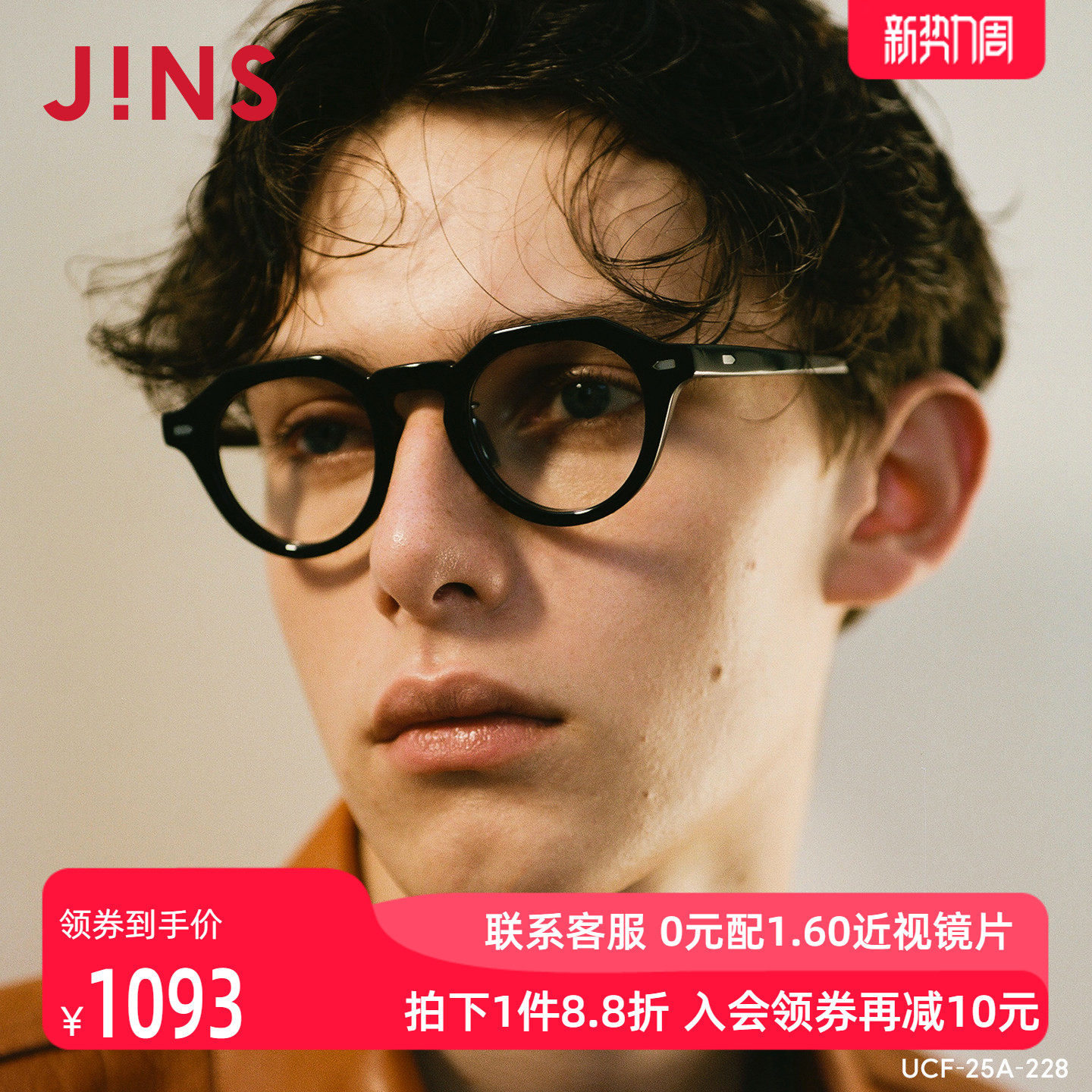 JINS睛姿近视镜CLASSIC复古板材框可加配防蓝光镜片UCF25A228