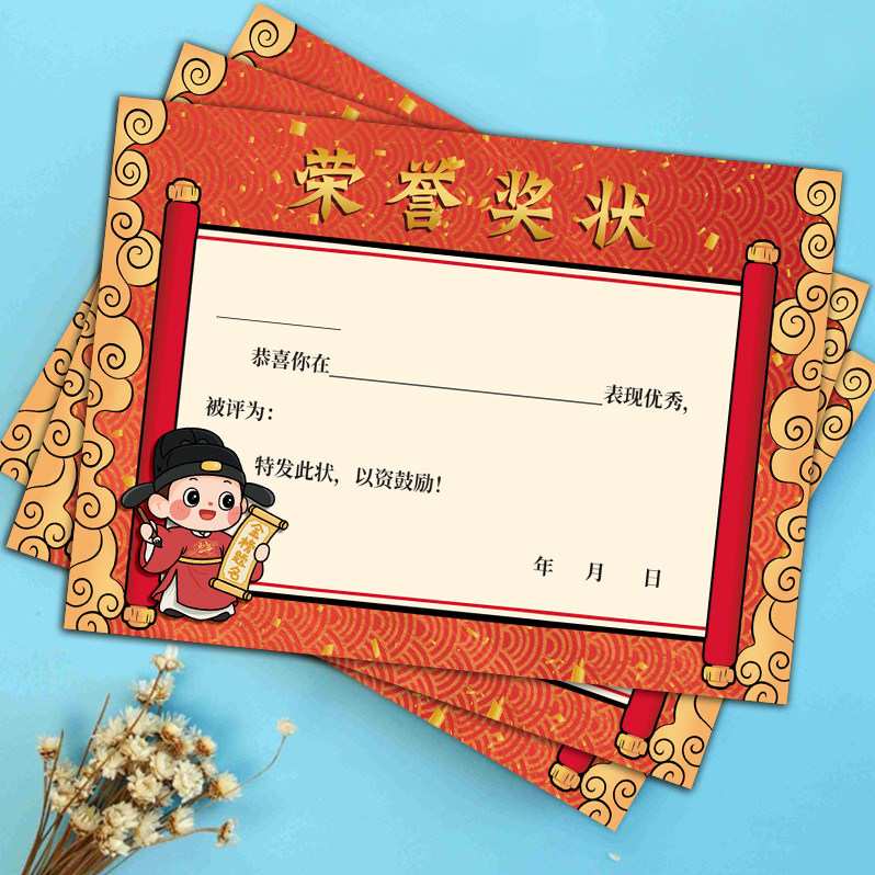 红色喜庆幼儿园通用奖状 小学生通用奖状 空白可定制奖状证书批发