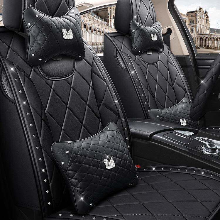 新款汽车坐垫全包皮网红时尚铆钉天鹅镶钻座套座椅套女士四季通用