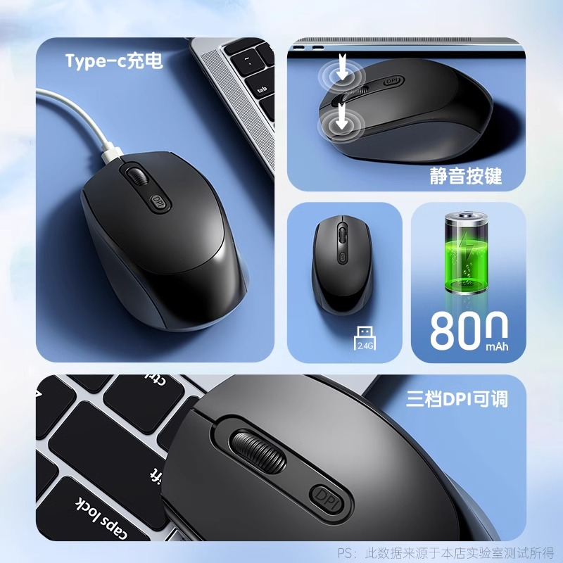英菲克M9无线鼠标静音无声可充电typec笔记本电脑男生人体工学usb