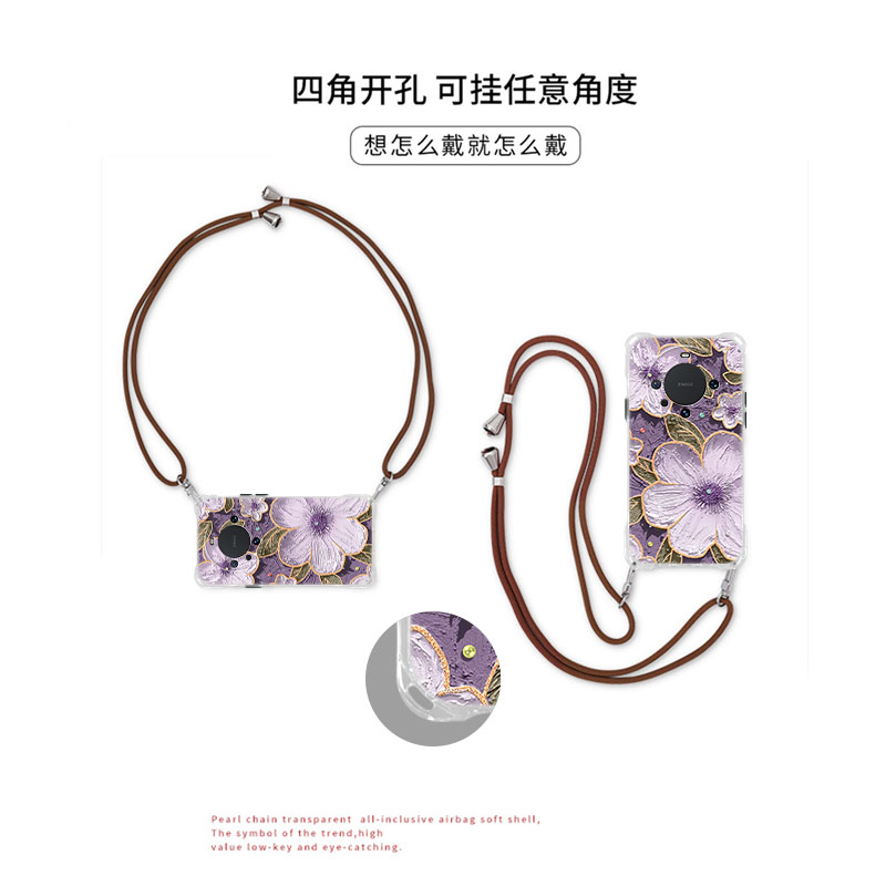 白茶花适用于华为mate60手机壳60pro新款mate50油画40pro女款mate30透明p40创意p40pro防摔斜挎绳p30全包软壳