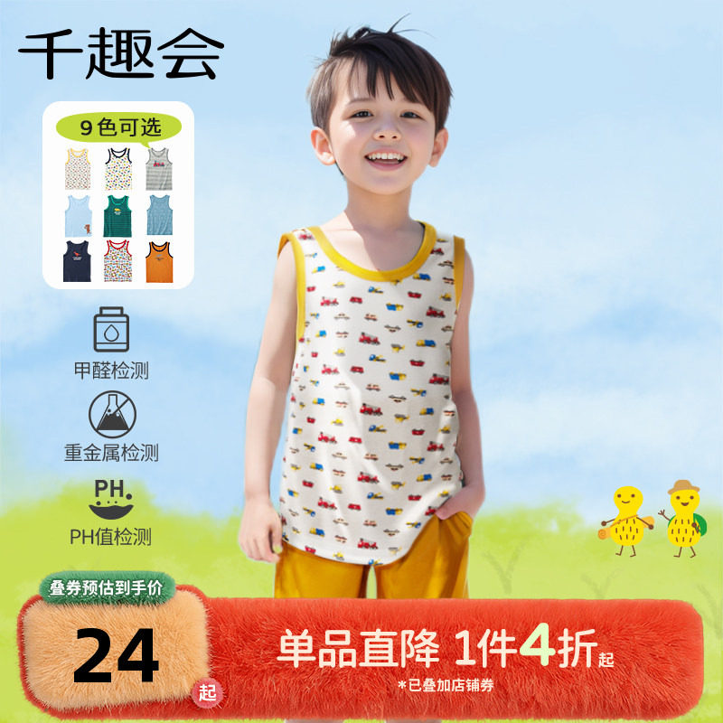 千趣会童装儿童夏装男童无袖卡通T恤背心轻薄透气纯棉打底衫上衣