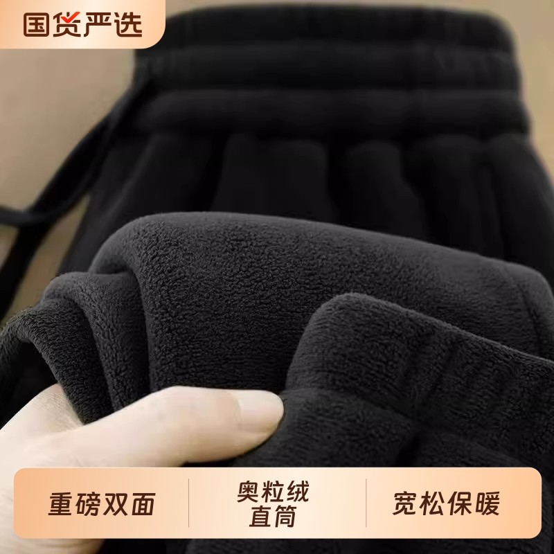 重磅双面奥粒绒直筒束脚裤男女秋冬加绒加厚男士宽松保暖外穿长裤
