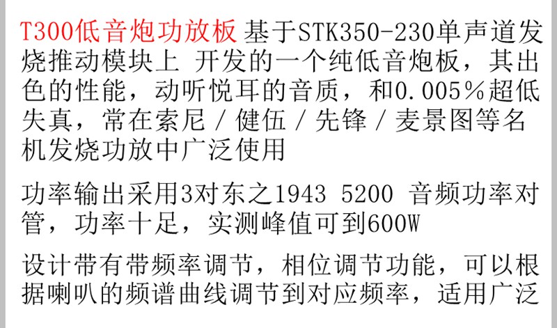 T300低音炮单声道功放板 大功率HIFI发烧专业级 5200 1943对管