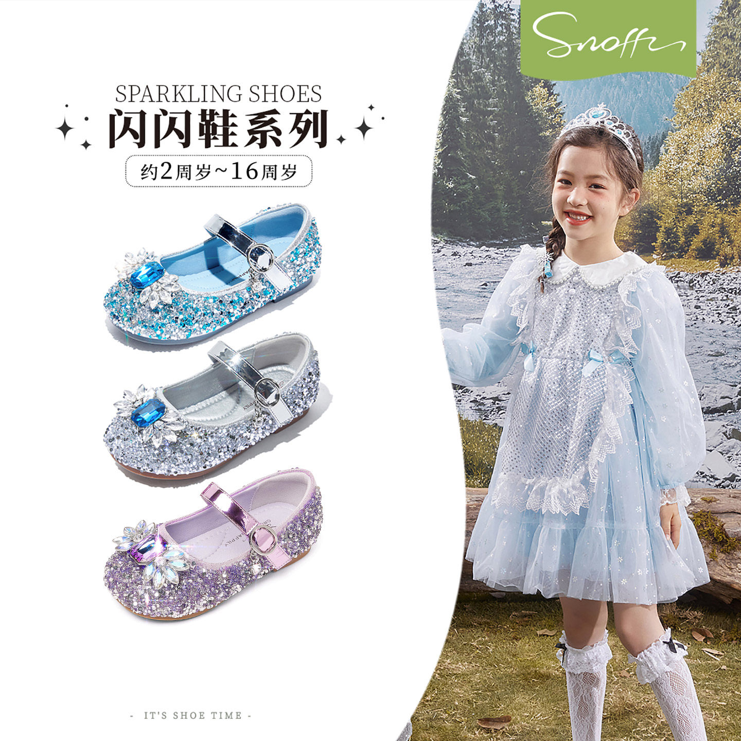 闪闪鞋|斯纳菲女童公主鞋爱莎水晶皮鞋春秋新款小女孩配裙子单鞋