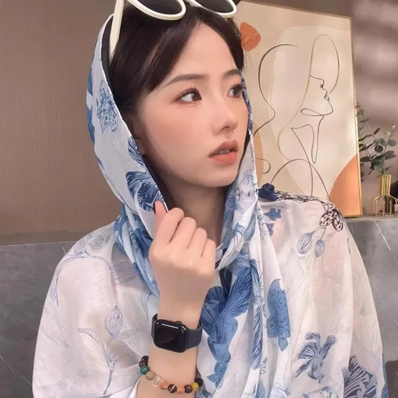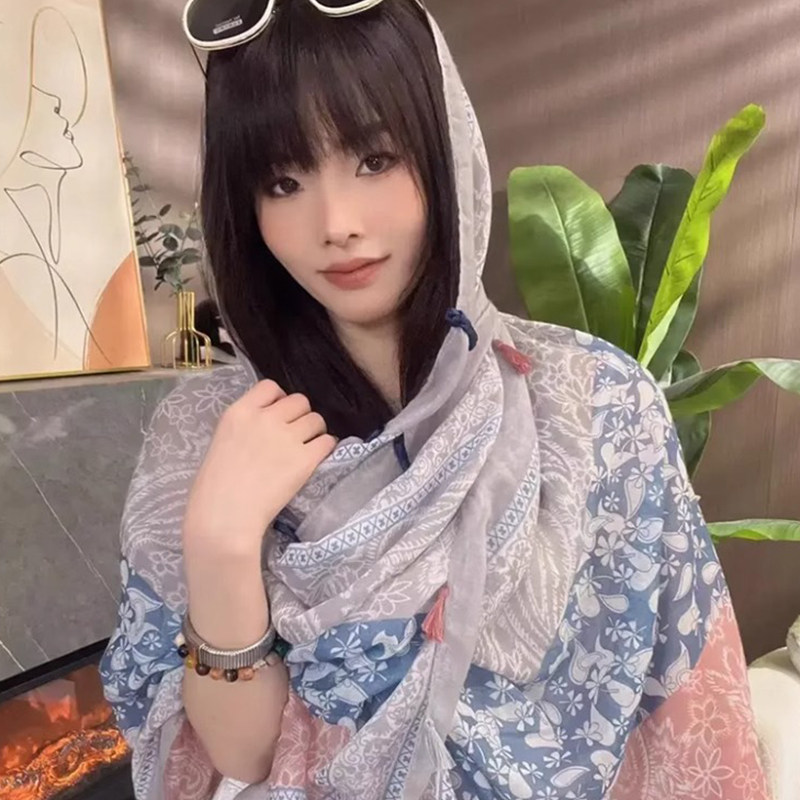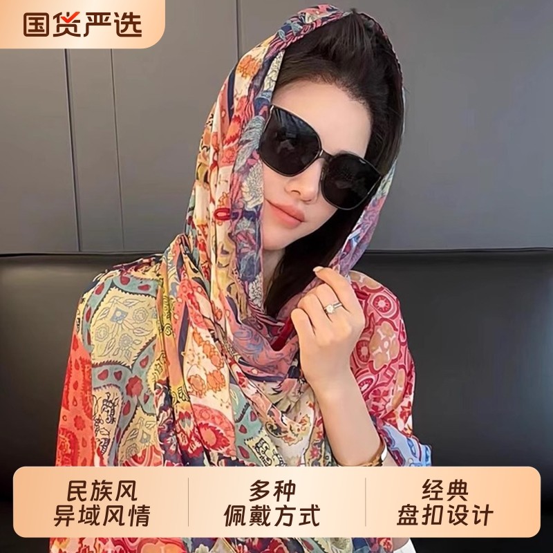 民族风拍照披肩女薄款丝巾2025新款旅游旅游海边沙滩纱巾防晒外搭