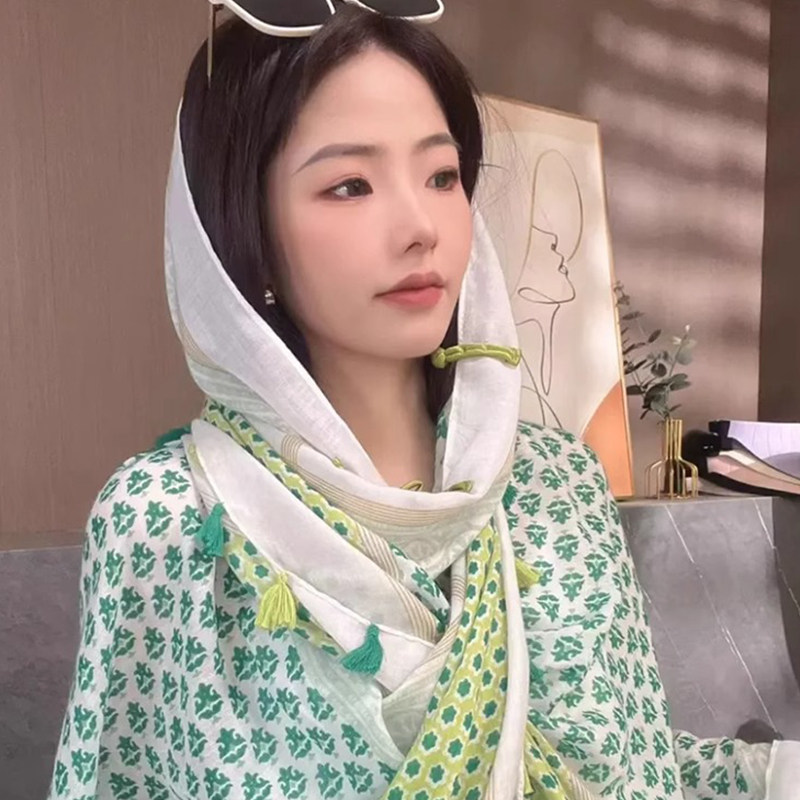 纯色棉麻披肩外搭女2025新款民族风夏季薄款丝巾敦煌旅游拍照头巾