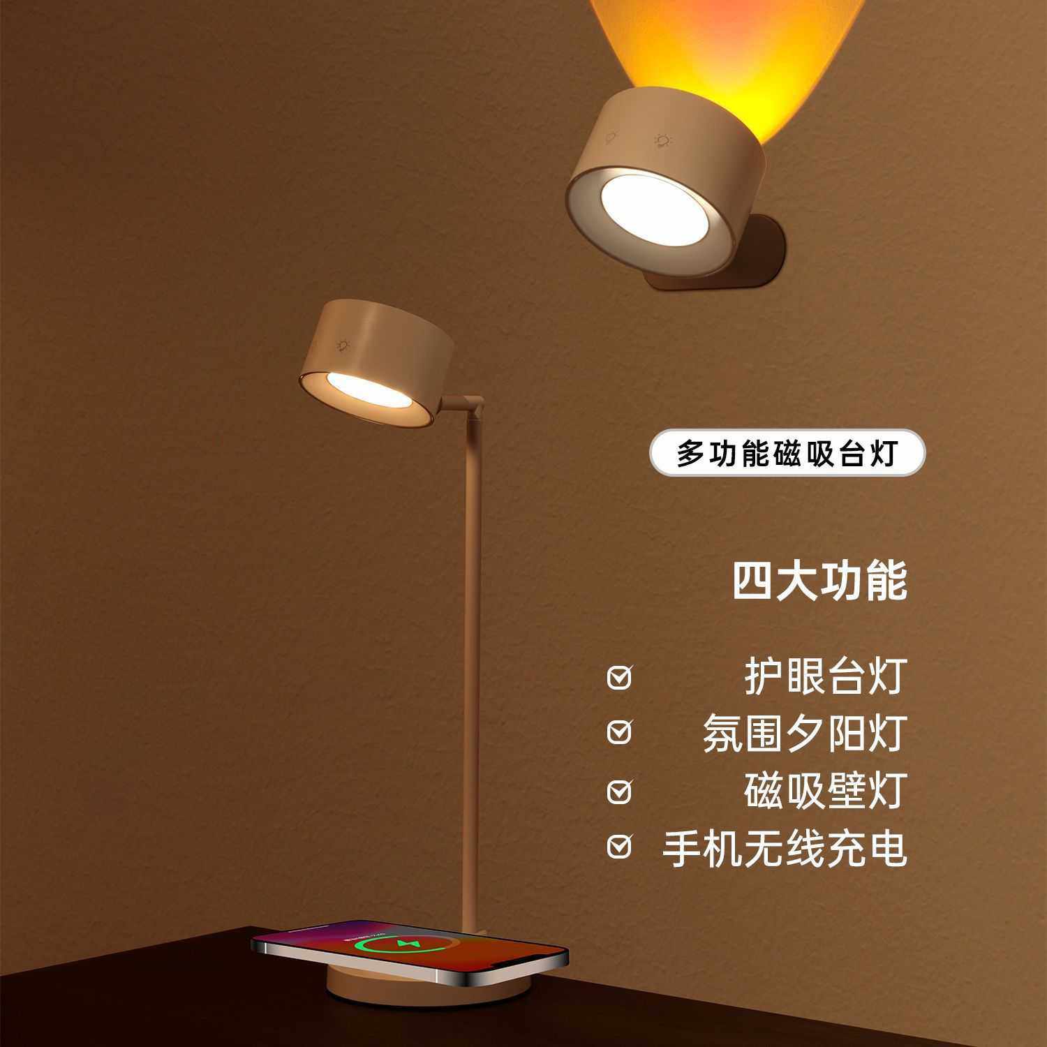 新款无线充台灯USB充电无极调光大范围照明磁吸壁灯床头柔光夜灯