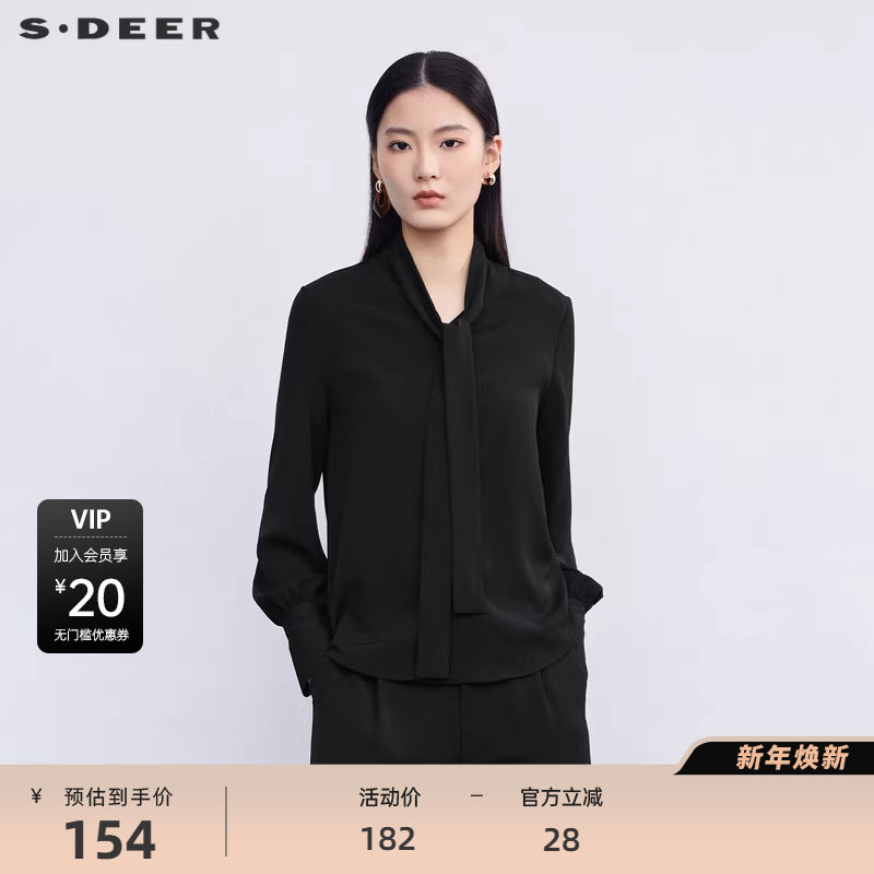 【sdeer奥莱】圣迪奥女装秋系带翻领雪纺基本款长袖衬衫S223Z0564