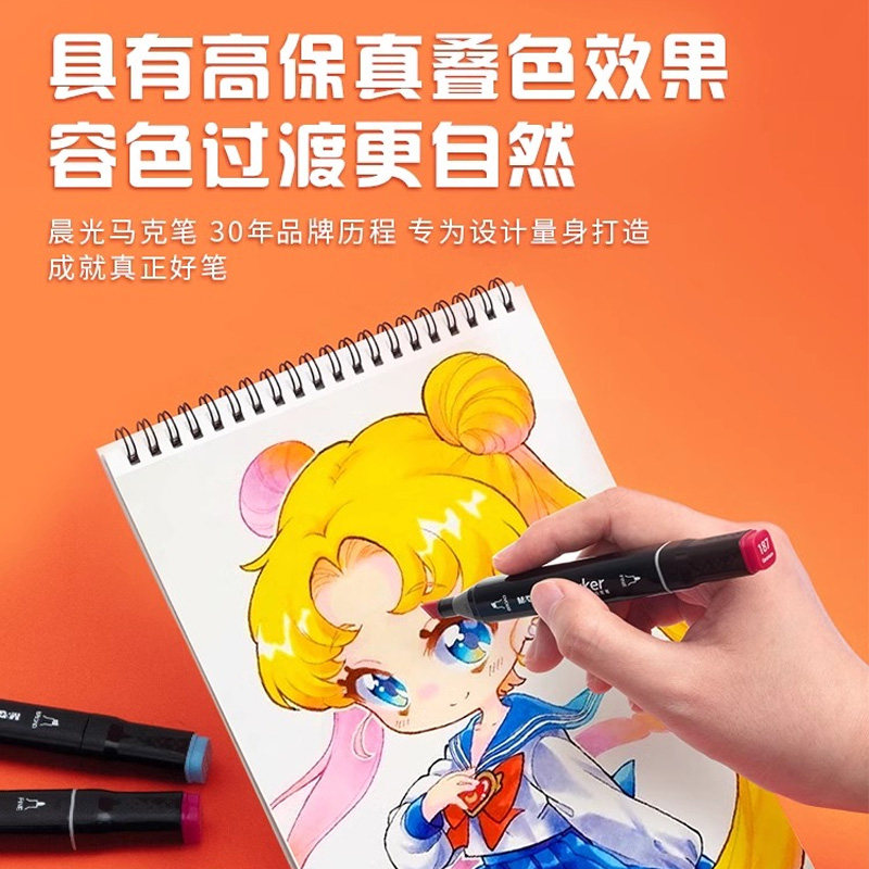 晨光马克笔水彩笔48色小学生美术专用双头油性速干不褪色动漫设计儿童手绘画涂鸦彩色24/36/60/8024色12色
