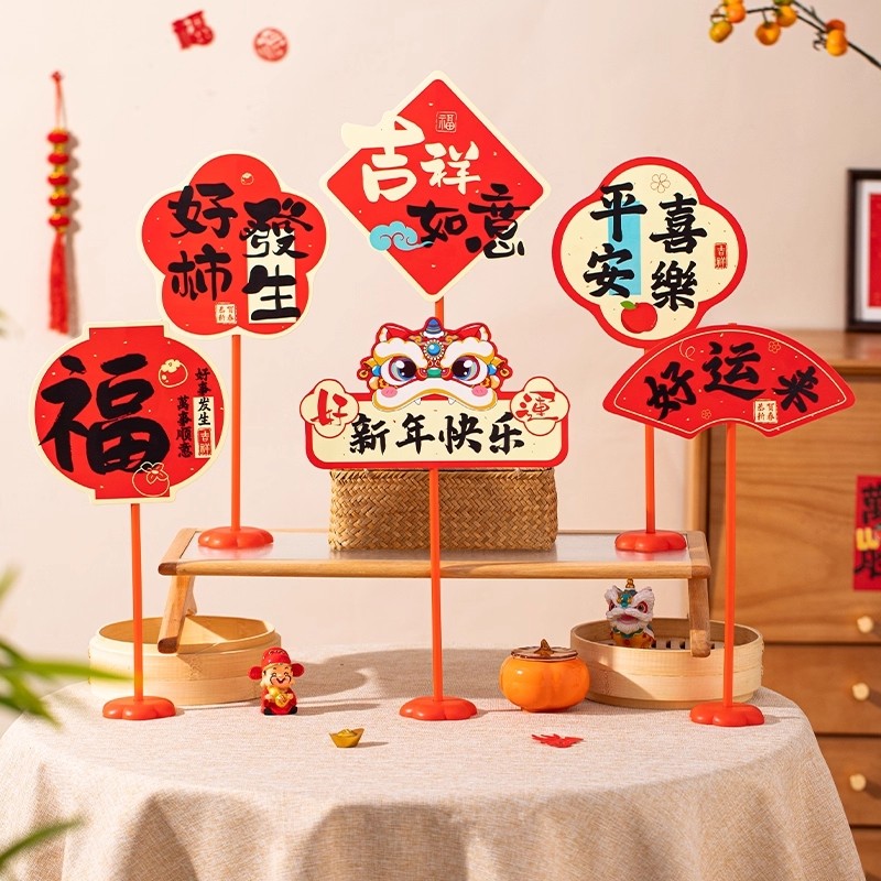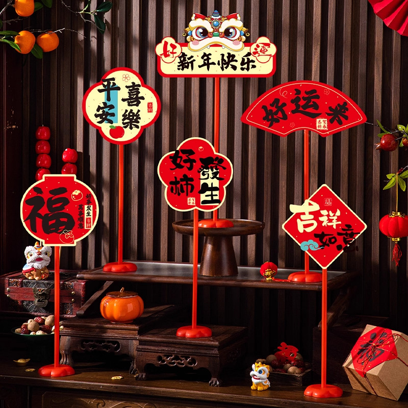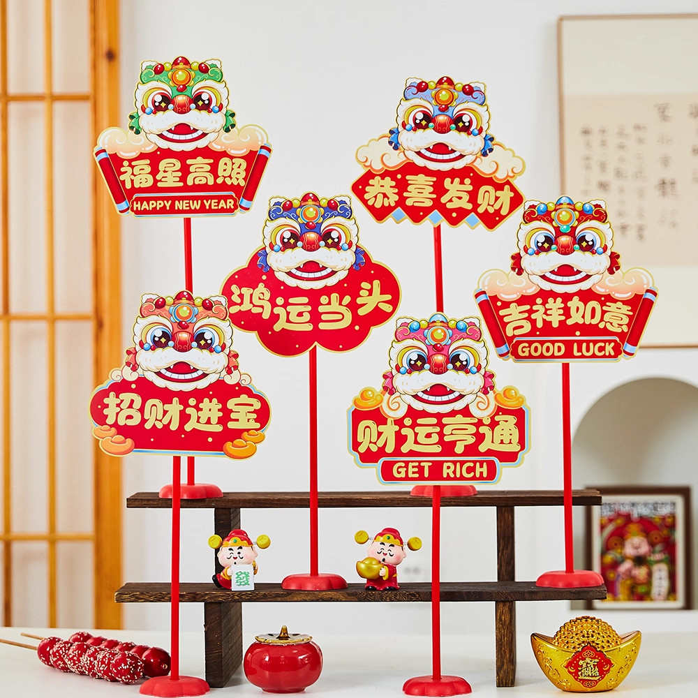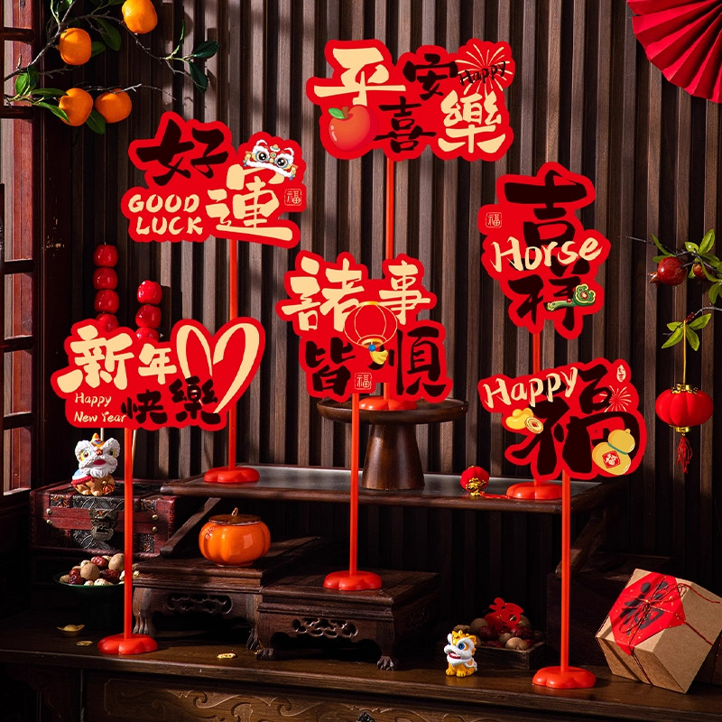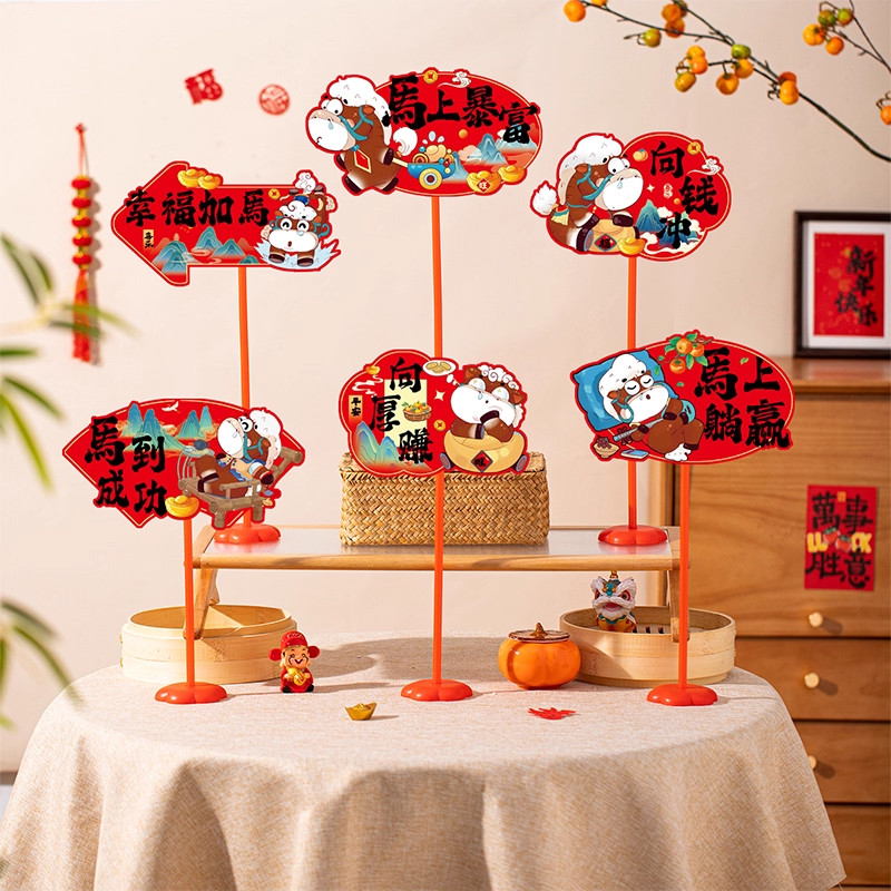 2026新年装饰摆件马年创意春节手举牌过年桌面元旦场景布置用品