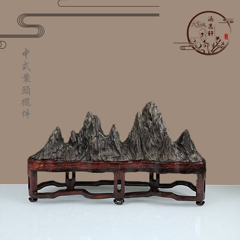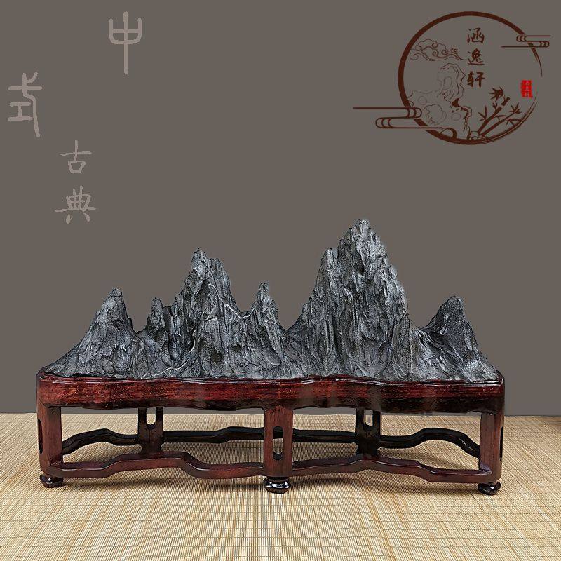 新中式太湖灵璧幽兰石山子笔架山型石头家居玄关禅意装饰工艺摆件