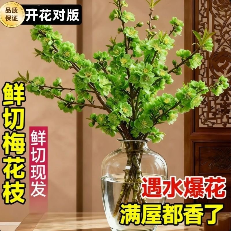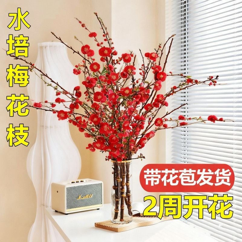 红梅水培植物干枝雪柳水养鲜花卉梅花鲜枝珍珠李室内客厅绿植盆栽