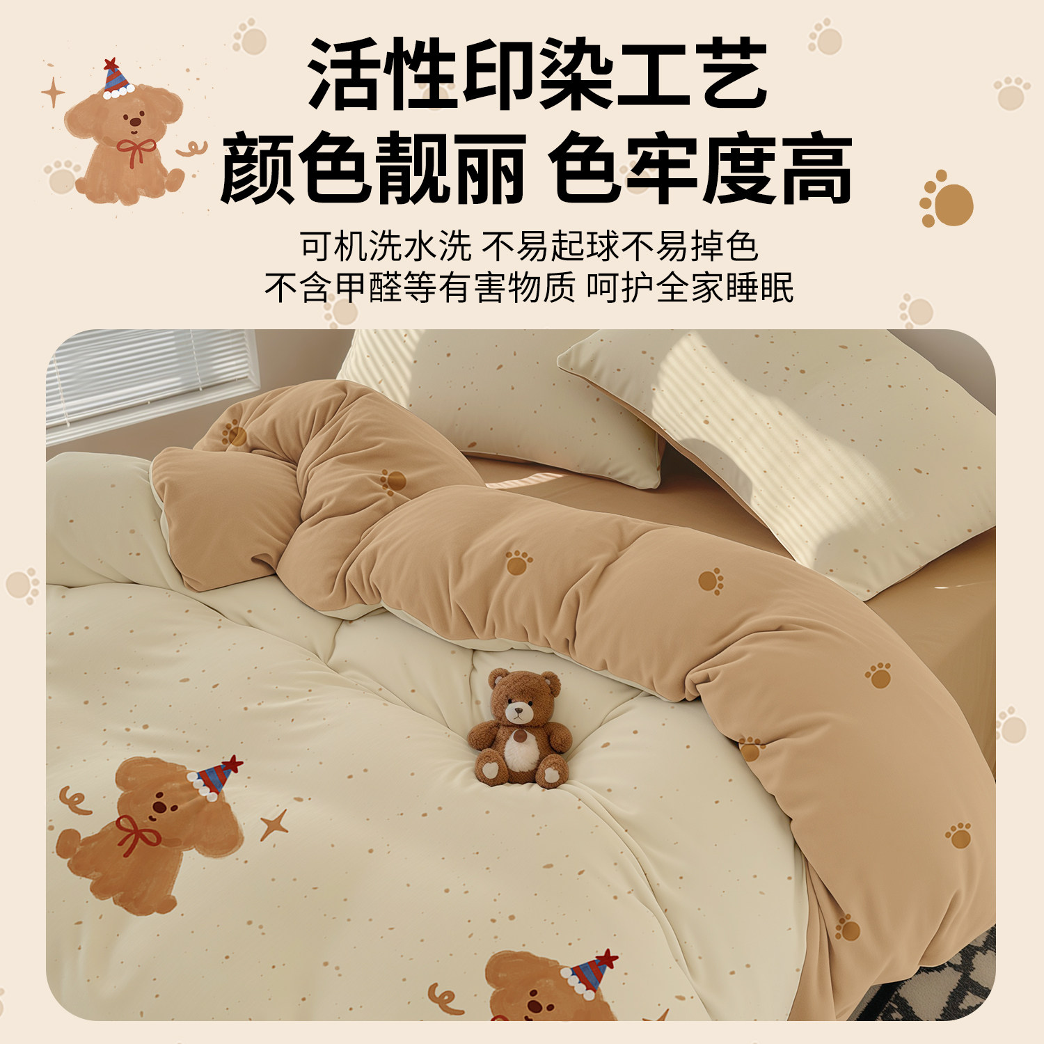 秋冬季加厚四件套牛奶绒被套床单双面加绒被罩床笠学生宿舍三件套
