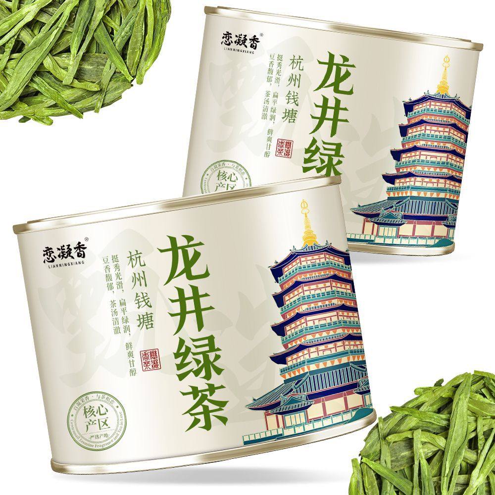 恋凝香龙井茶新茶正宗杭州钱塘产区豆香浓香耐泡绿茶春茶50g罐装