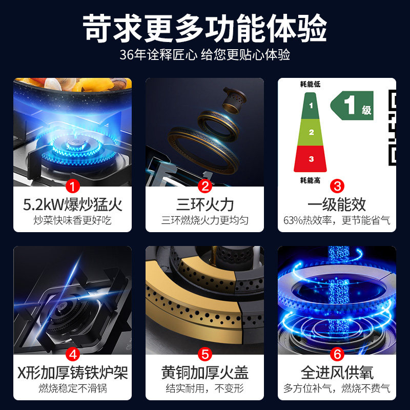 5200W三环火灶 全铜火盖 一级能效 大面板