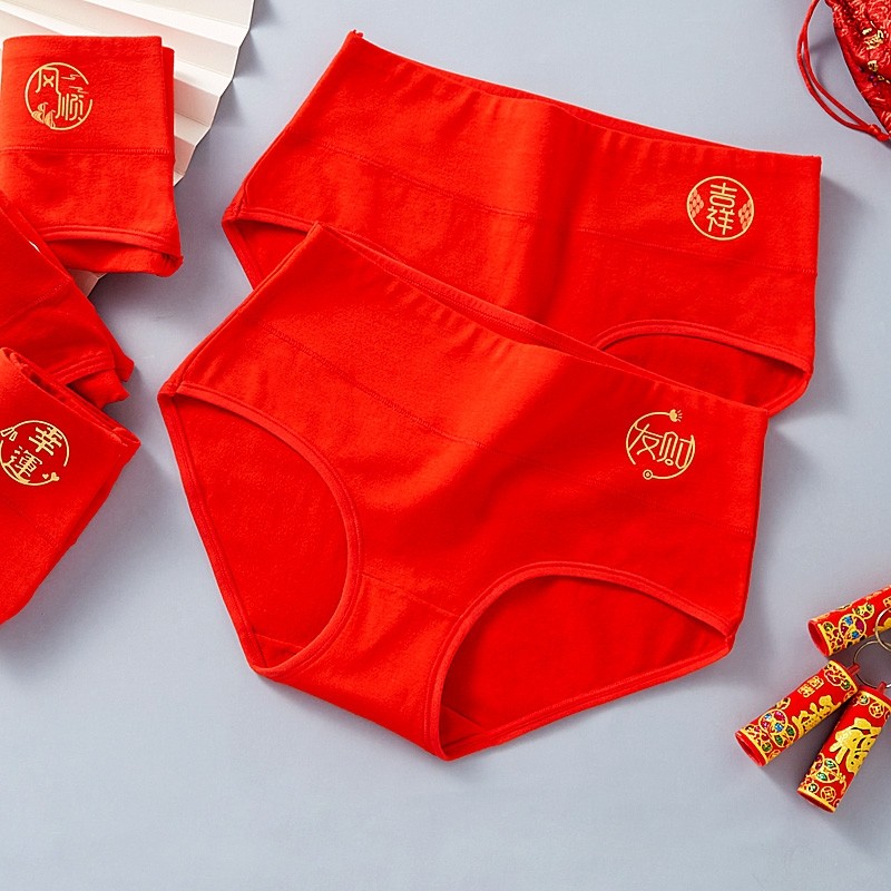 本命年红内裤女纯棉抗菌裆中腰全棉红色结婚属虎年三角短裤头女士