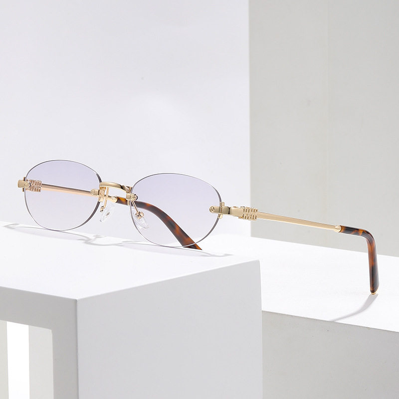 变色无框眼镜女韩版复古潮流圆防蓝光平光镜架高级感时尚眼镜