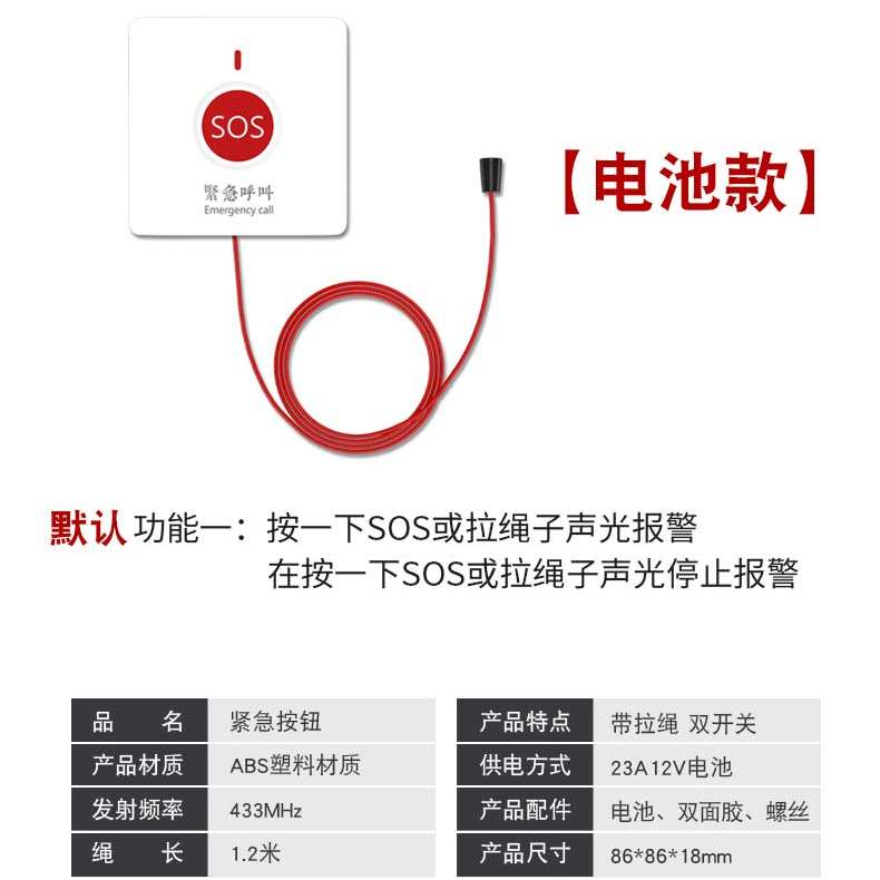泉宇通SOS公共厕所紧急报警器老人呼叫器残疾人卫生间声光无线残卫报警器无需布线求助呼叫按钮一键报警系统