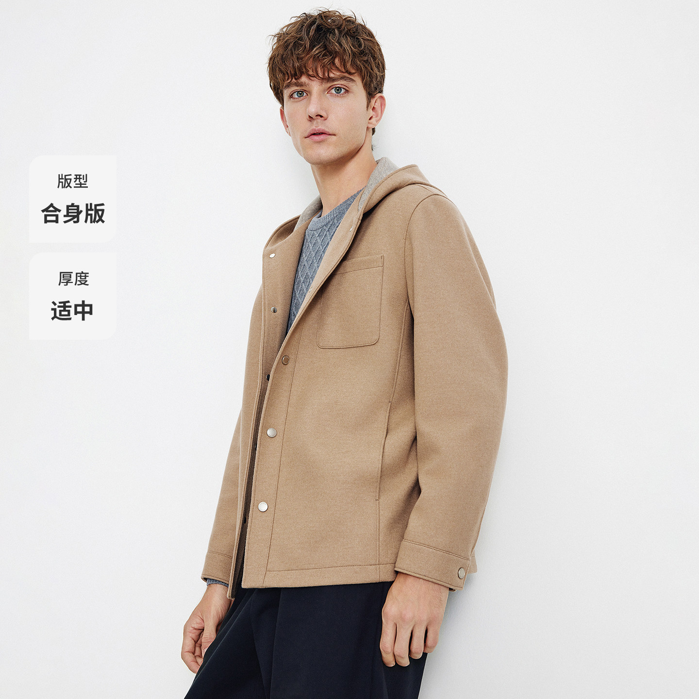 Navigare意大利小帆船休闲连帽羊毛呢大衣男秋季新款短款夹克外套