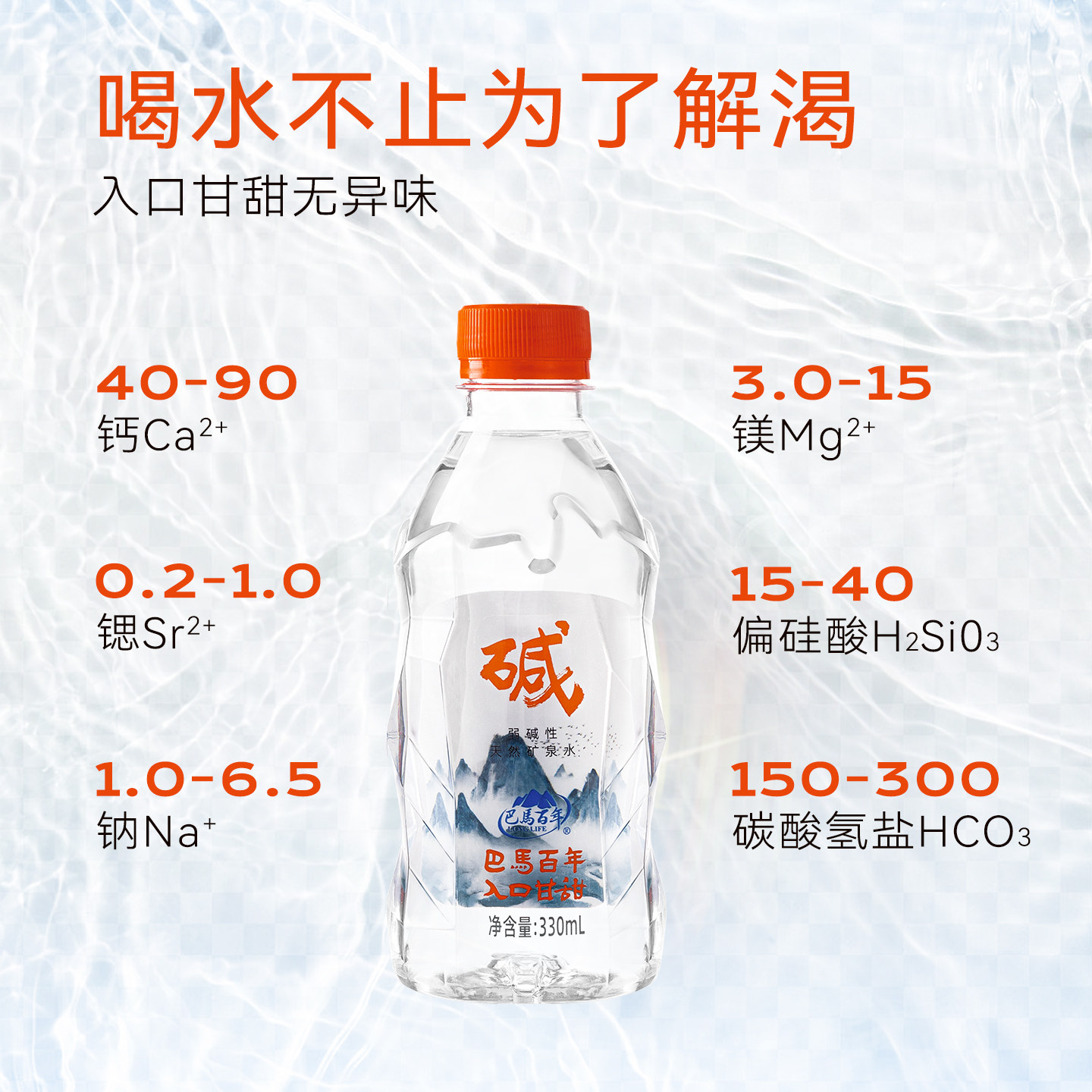 巴马百年弱碱性天然矿泉水330ml*24瓶小瓶装便携饮水商务会议车载
