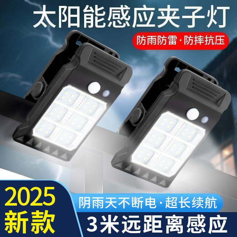 太阳能户外灯庭院灯围栏夹子灯家用防水壁灯人体感应超亮照明路灯