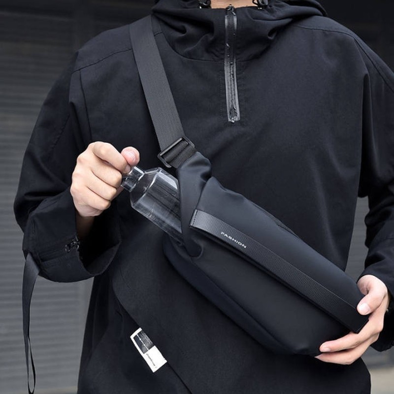 2025新款男士斜挎包防水运动单肩包休闲大容量胸包磁吸扣通勤时尚