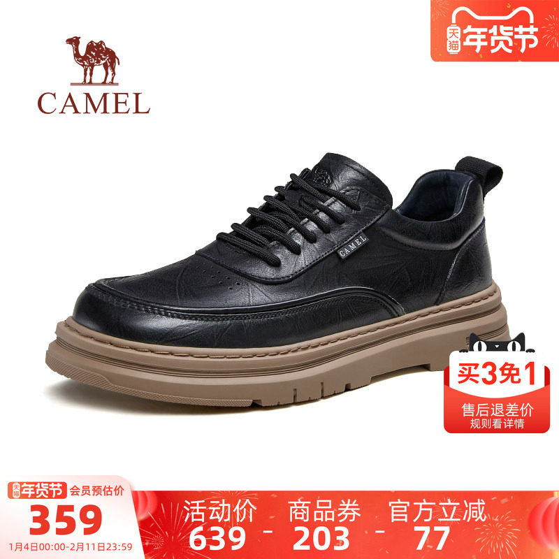 骆驼男鞋2025秋季新款真皮防滑板鞋青年厚底英伦风复古休闲皮鞋男
