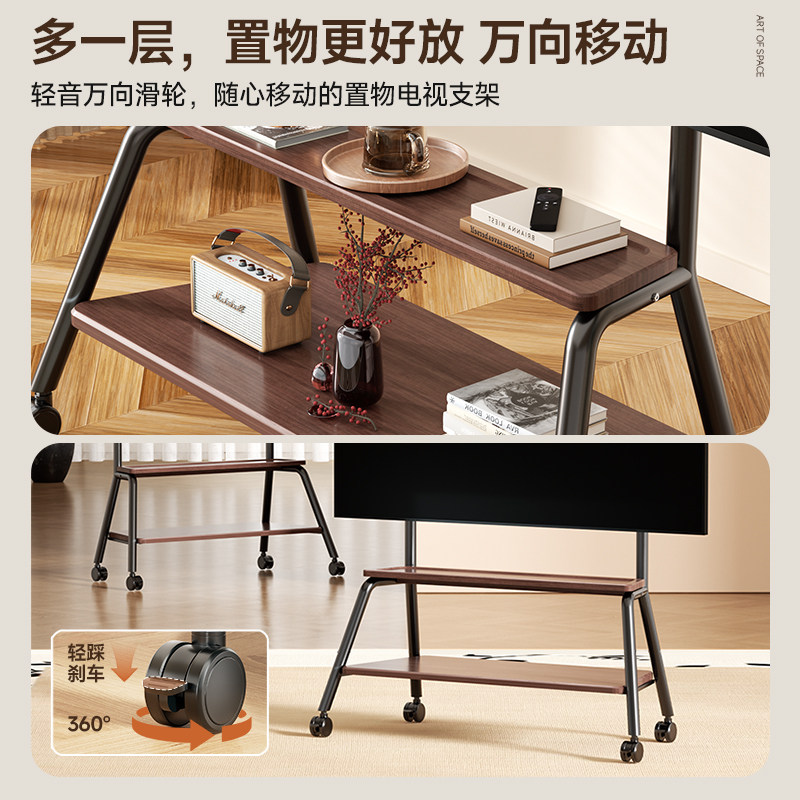 电视机移动支架落地带轮艺术推车客厅电视柜55657075英寸通用挂架