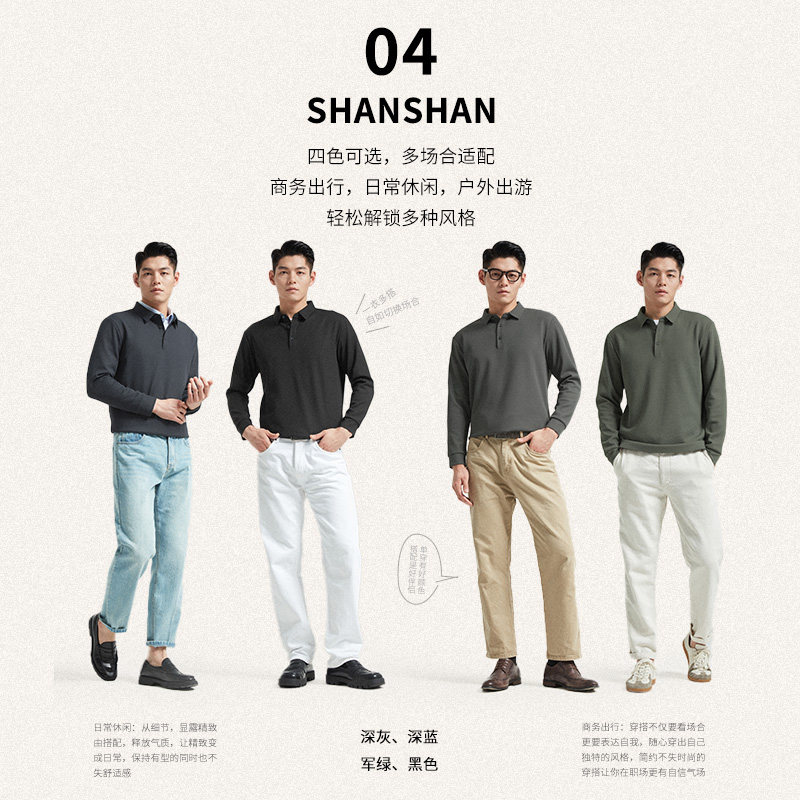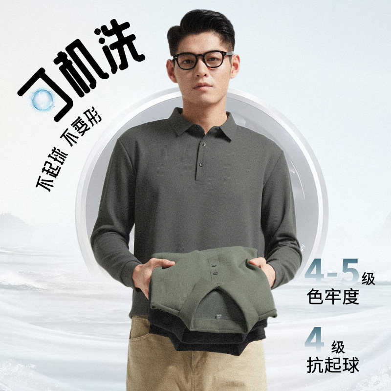 [加绒加厚]杉杉高弹长袖polo衫男款2025秋冬新品保暖肌理男士t恤
