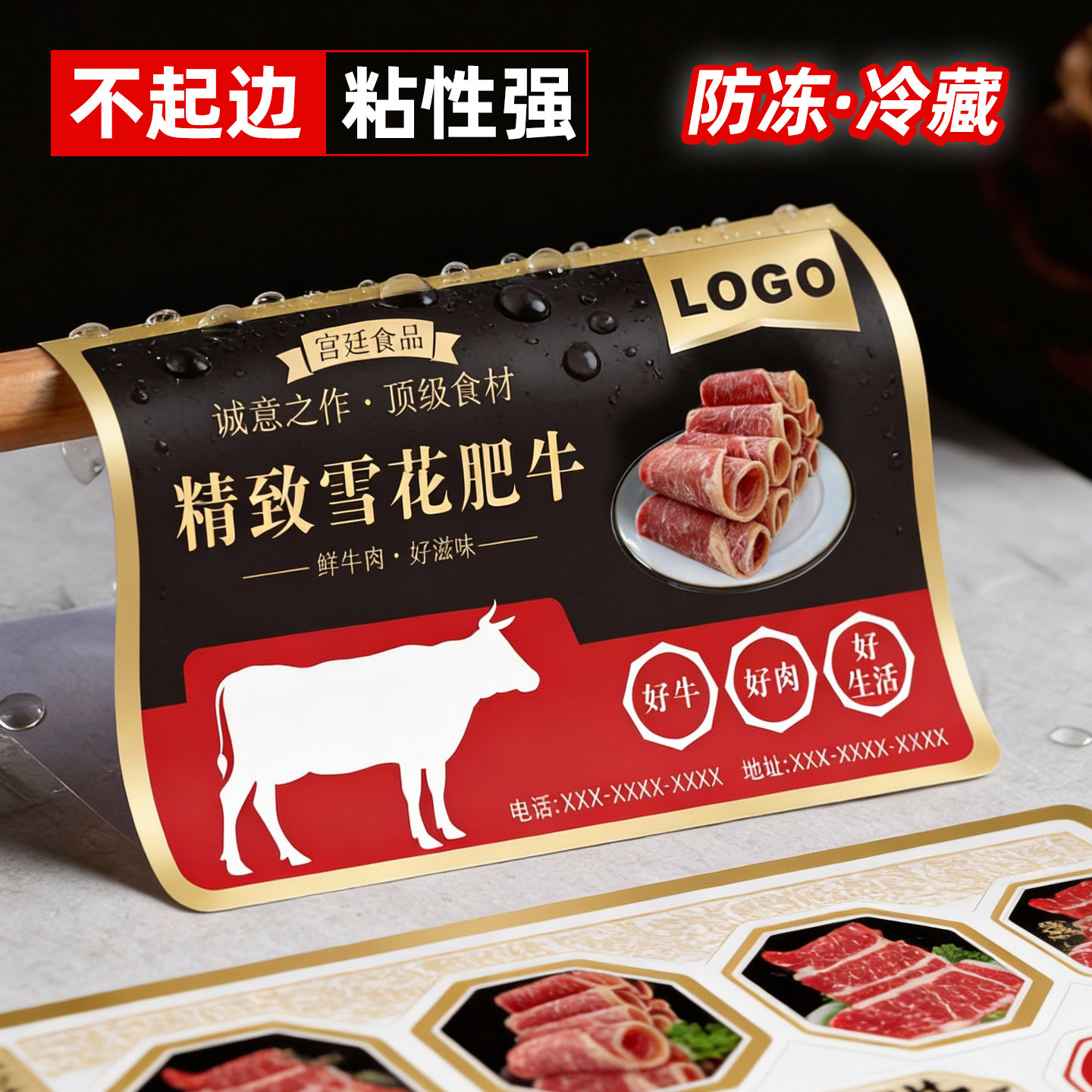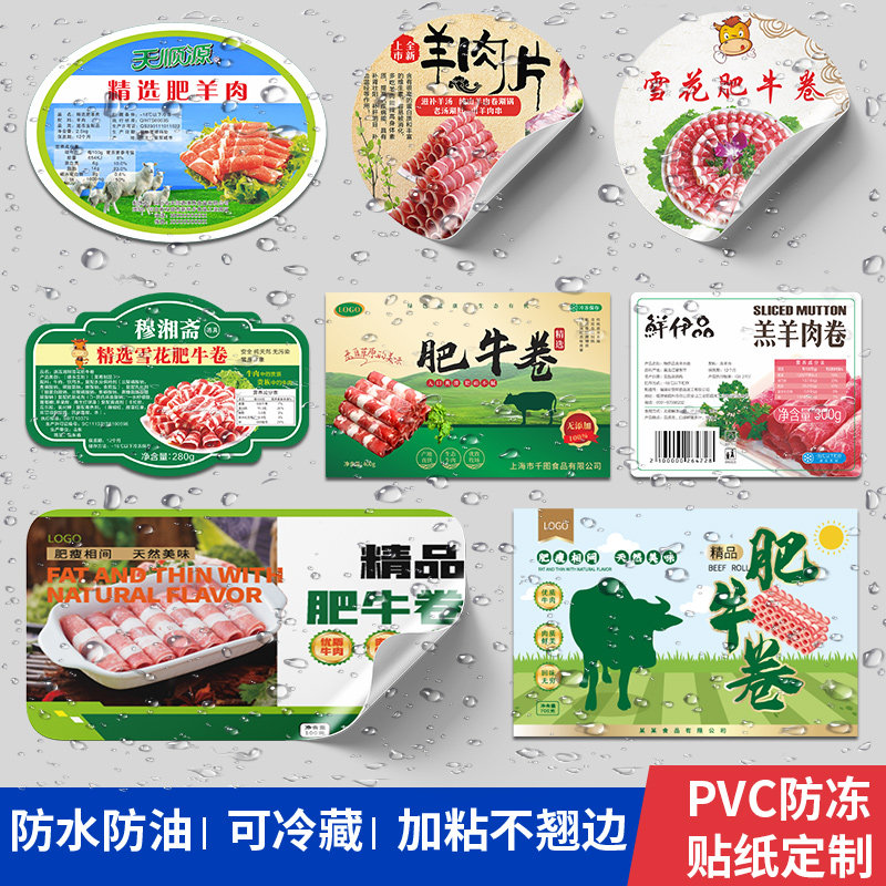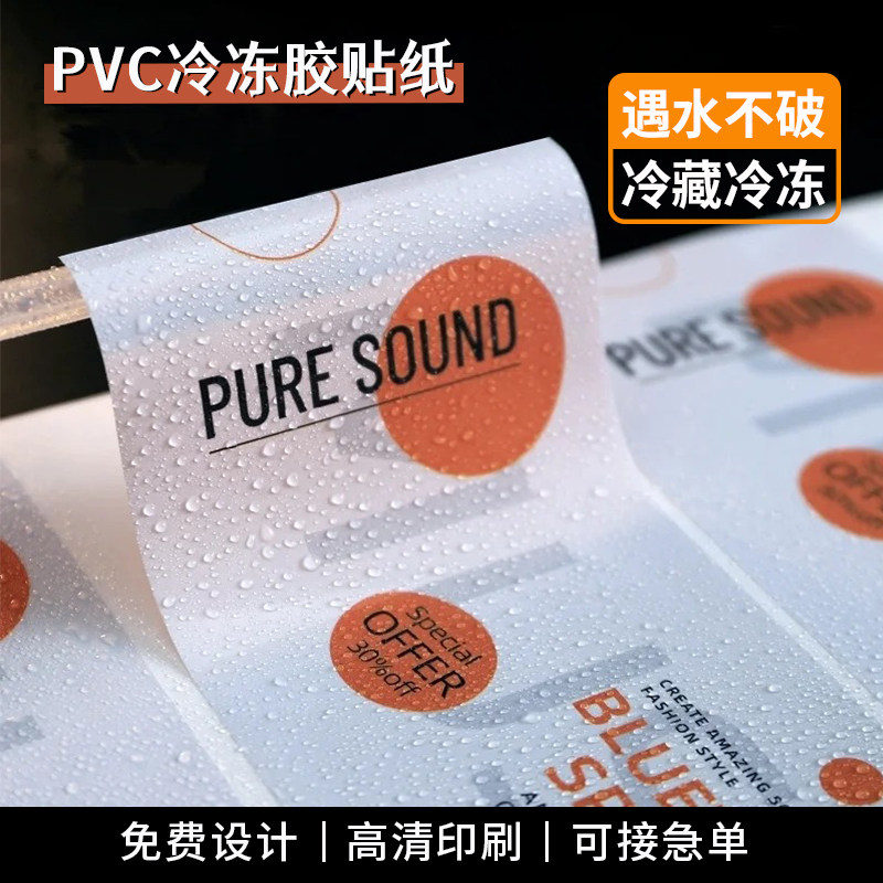 冷冻保存贴pvc防水冻不干胶标签logo定制食品打包盒包装商标定做烘焙腊肉卷腊肠真空袋酒标冰箱冷藏广告贴印