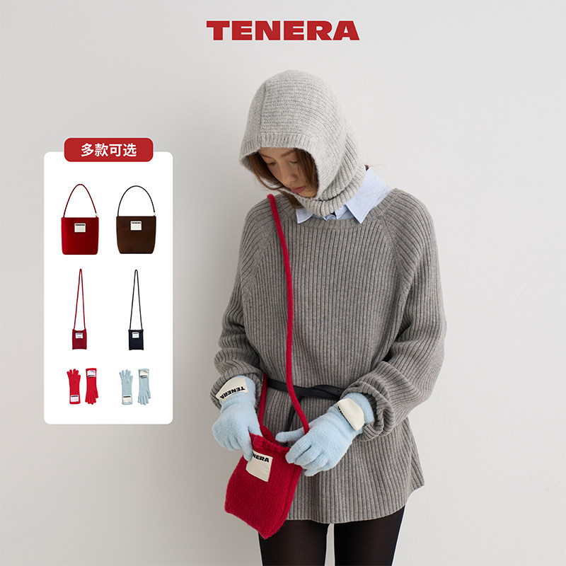 TENERA丝绒系列小方包包女款手拎包斜挎针织手机包手套组合