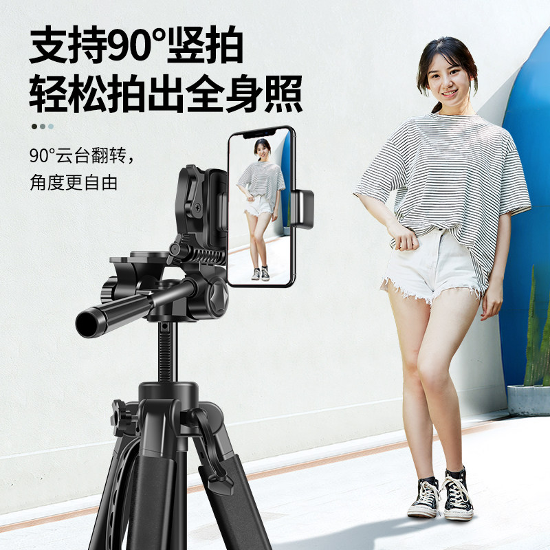 手机拍摄支架直播专用自拍杆三脚架落地式多功能支撑架通用捭机架户外便携伸缩升降网课考研复试架子三角支夹