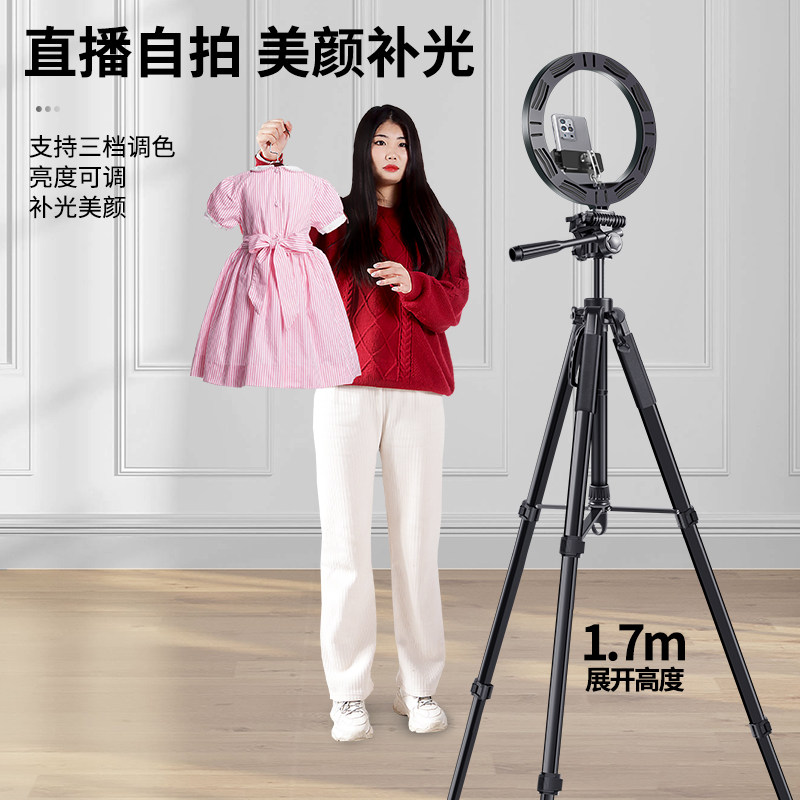 手机支架拍摄直播专用三脚架带补光灯可伸缩网红拍视频拍照自拍神器三角架子万能通用上网课落地多功能支撑架