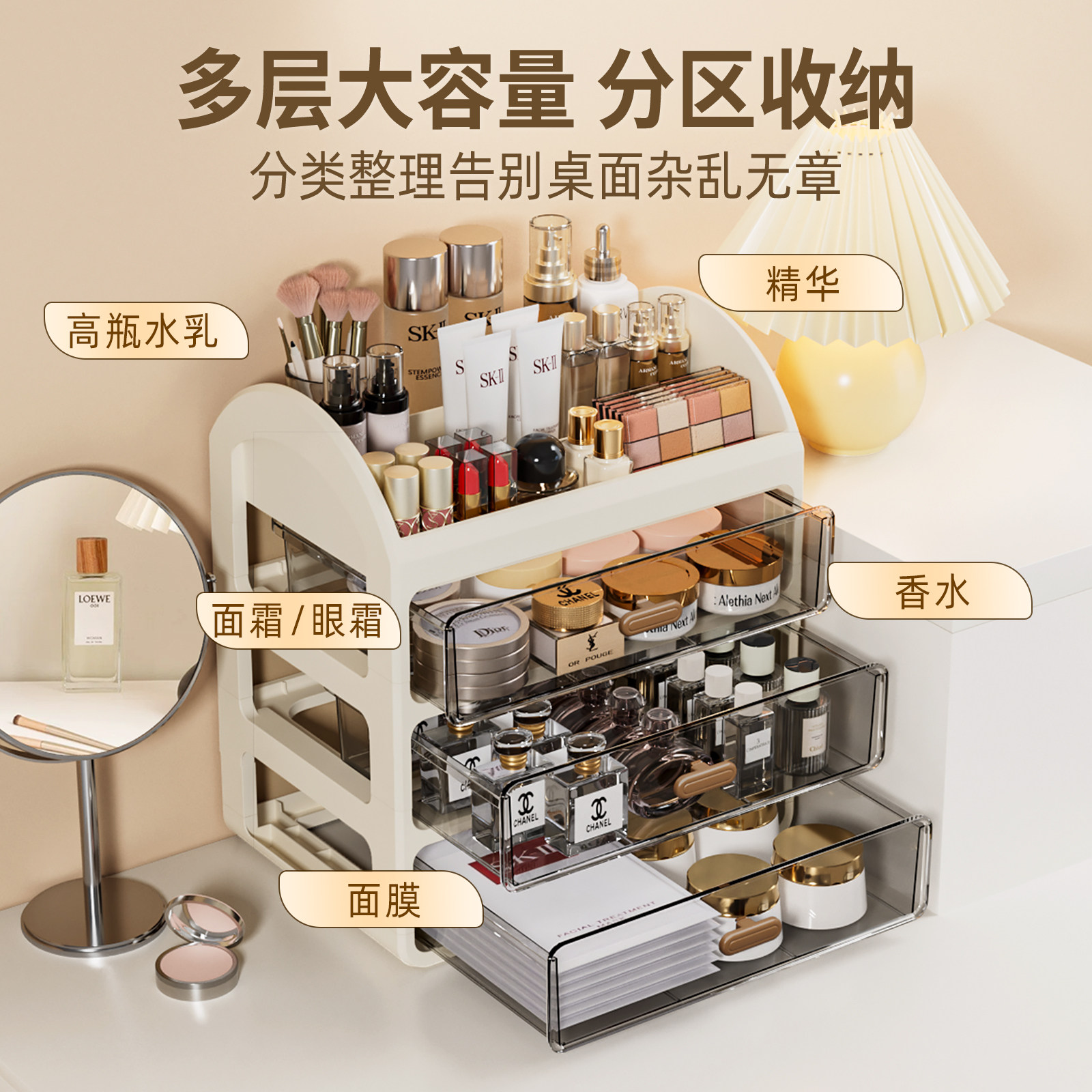 化妆品收纳盒桌面高级感抽屉式梳妆台透明整理盒口红护肤品置物架