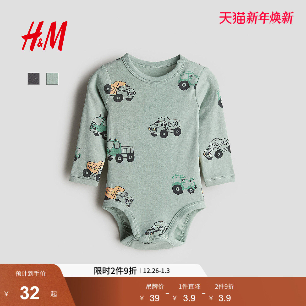 HM童装男婴女婴连体衣冬季内着婴儿印花圆领长袖哈衣爬服1146165