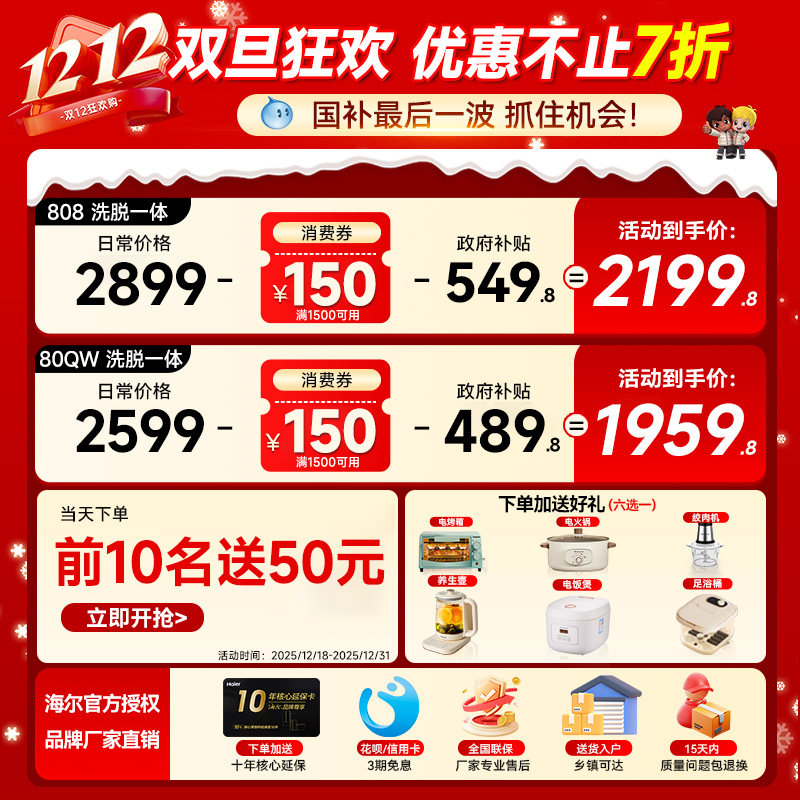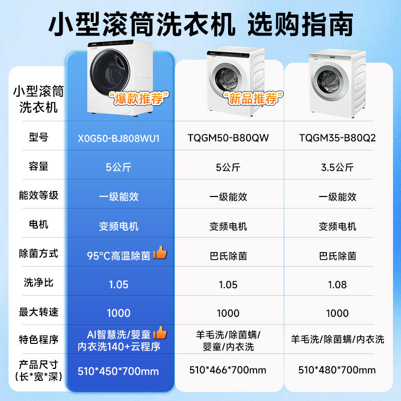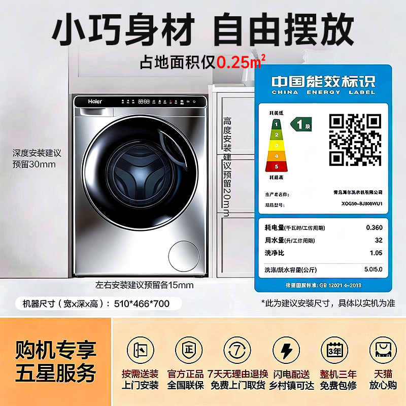 【新品】海尔迷你滚筒洗衣机5公斤婴儿高温煮洗全自动除菌家用808