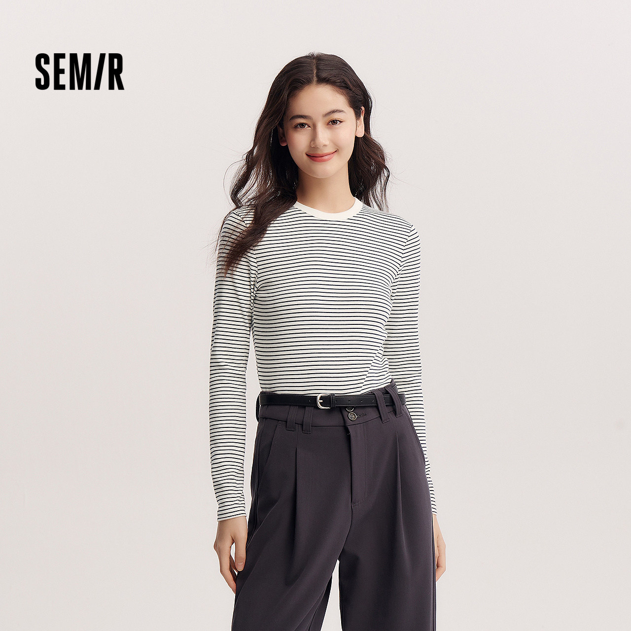 森马长袖T恤女春季正肩紧身圆领打底衫女士显瘦基础款百搭套头衫