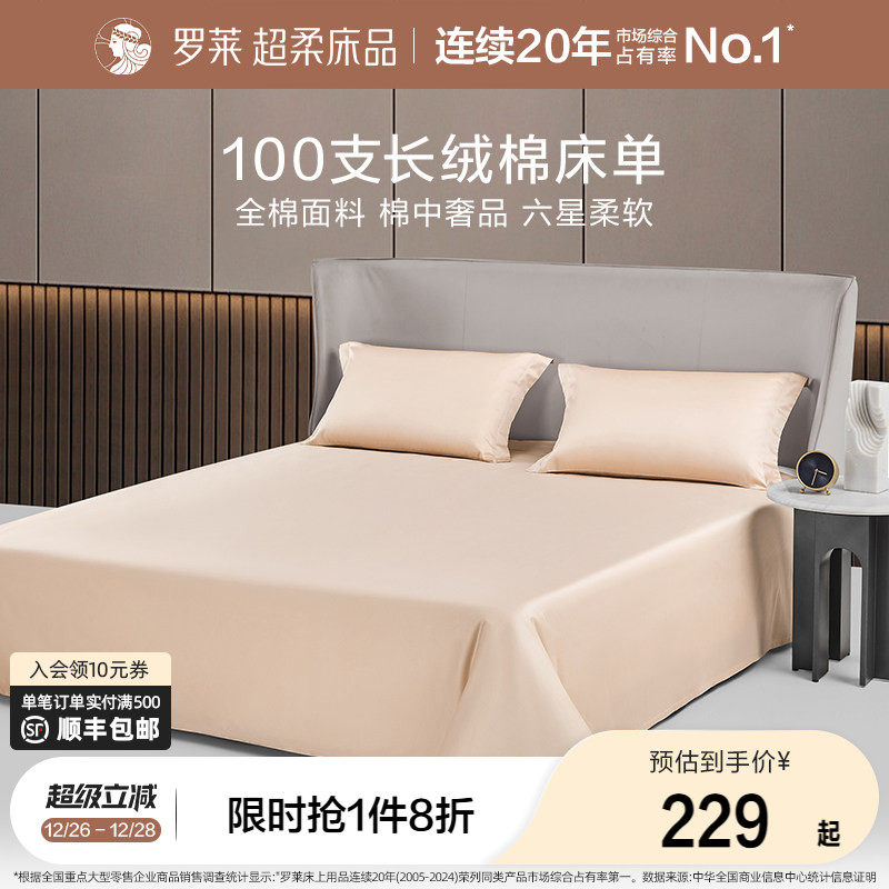 罗莱家纺100支简约全棉纯棉长绒棉长绒棉床单单件单人双人纯色