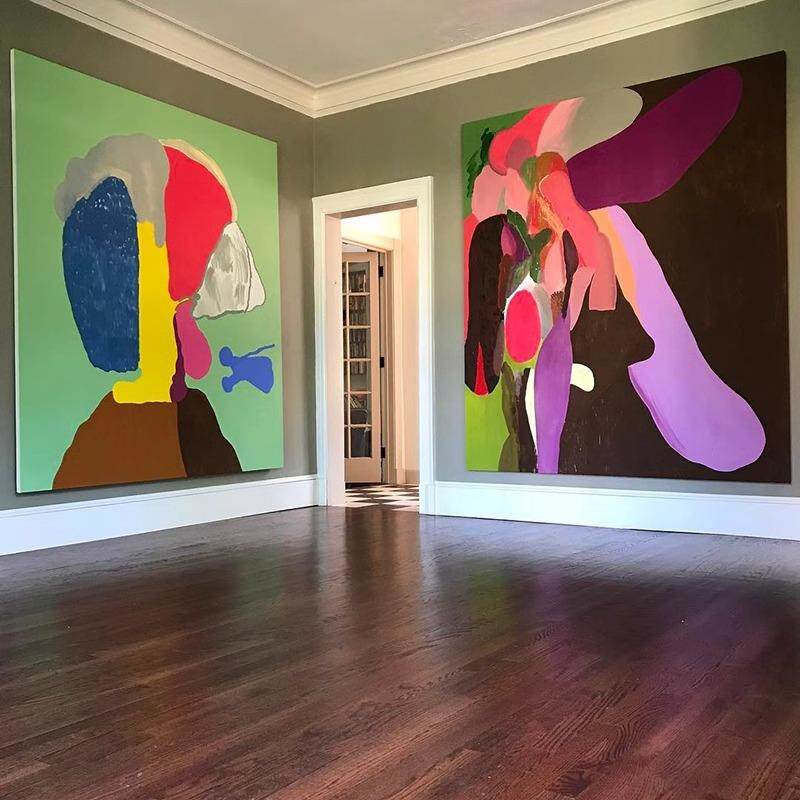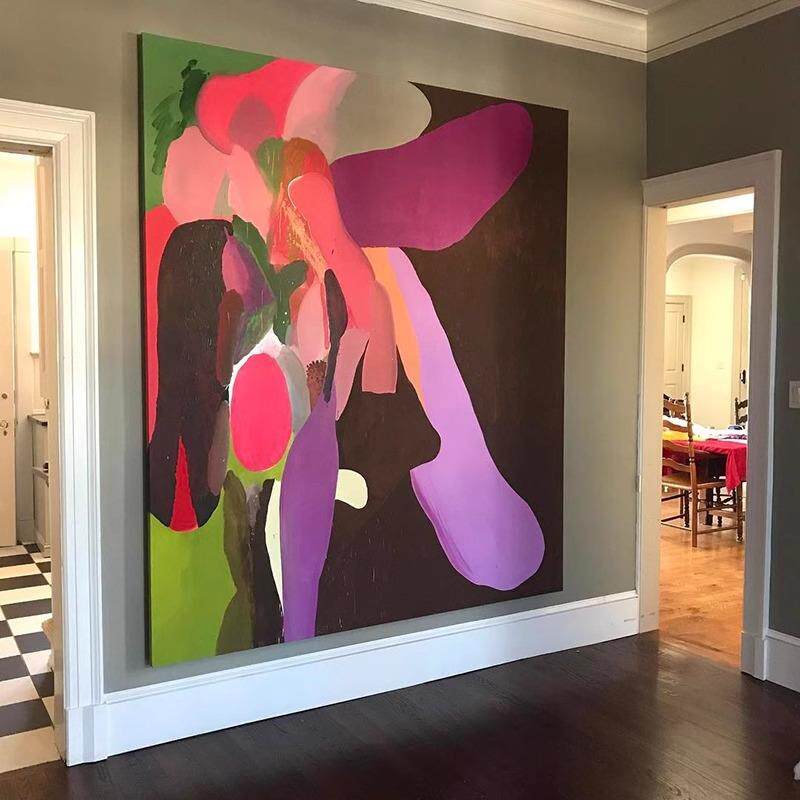 多巴胺风大幅抽象手绘油画后现代客厅装饰画玄关走廊壁画方形挂画