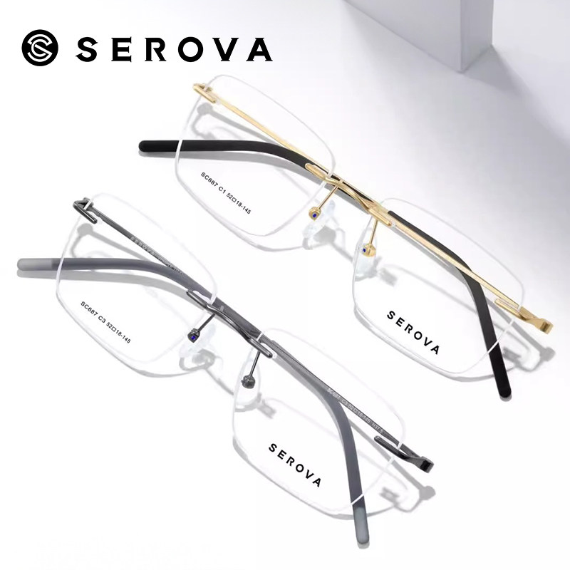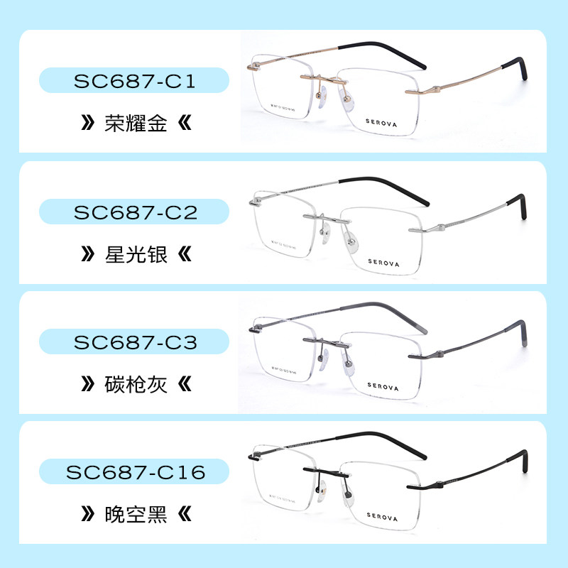 施洛华超轻无框近视眼镜男小脸方框商务超轻钛架光学眼睛女SC687