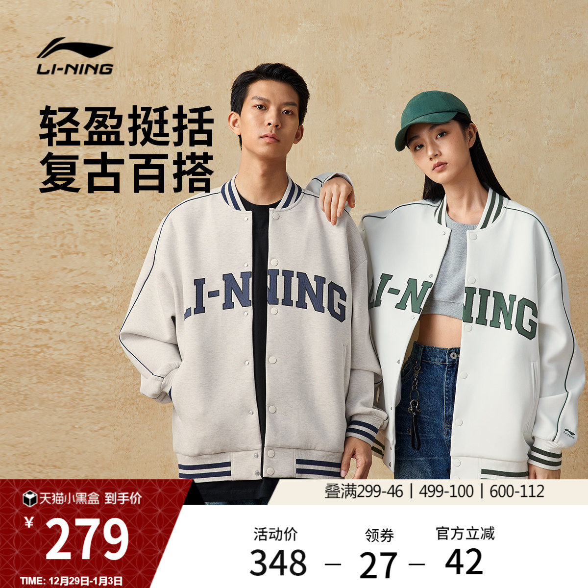 李宁棒球服男士冬季官方美式情侣卫衣复古宽松上衣运动夹克外套女