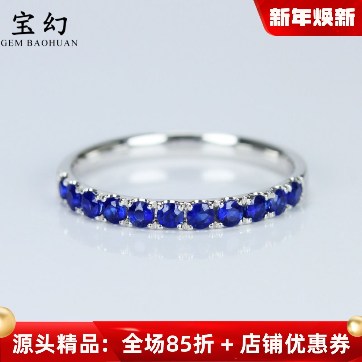 18K白金天然皇家蓝宝石排戒 黄金深蓝色女款满圈戒指尾戒指环定制