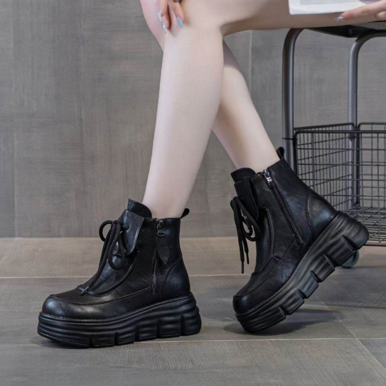 增高厚底复古女款2025新款小众方头松糕厚底jk短靴小个子马丁靴