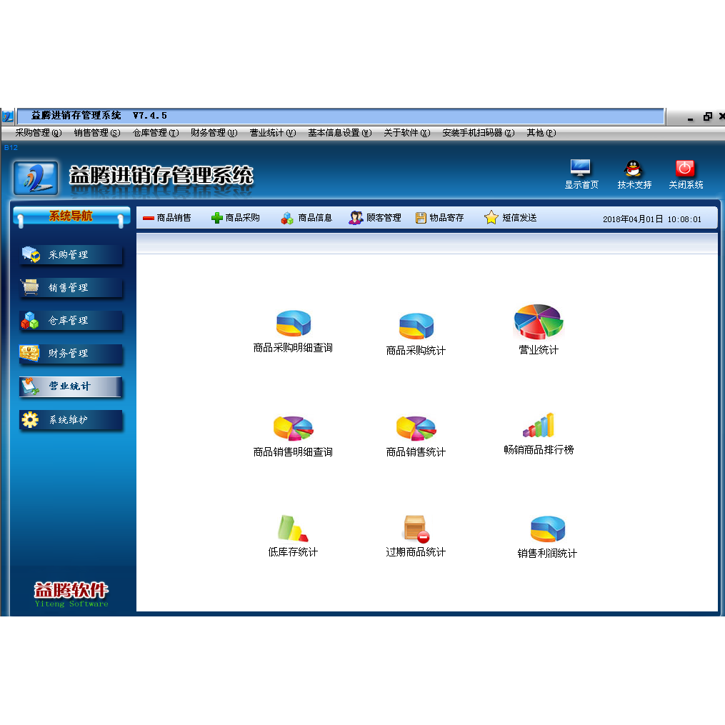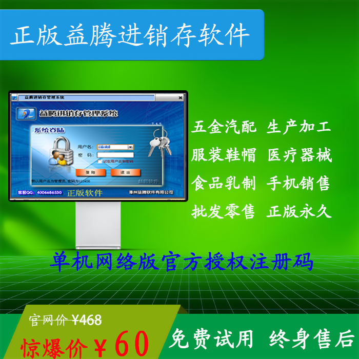 正版益腾进销存管理软件毅鞋服装手机五金烟酒化妆品超市收银系统