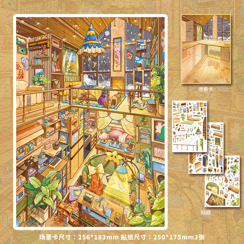 咔咔呜22.0造景贴纸特油大版 微缩场景女孩diy立体小屋拼贴画