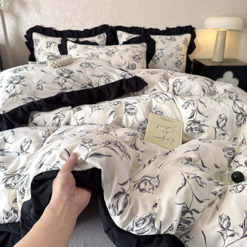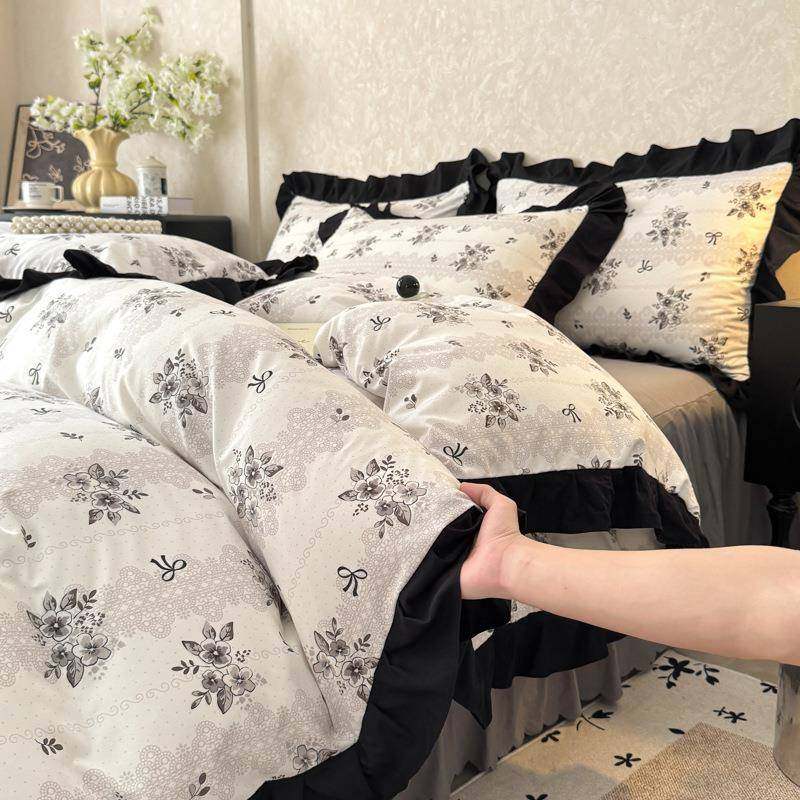 法式复古花边四件套亲肤水洗棉被套床单四季款被罩学生宿舍三件套
