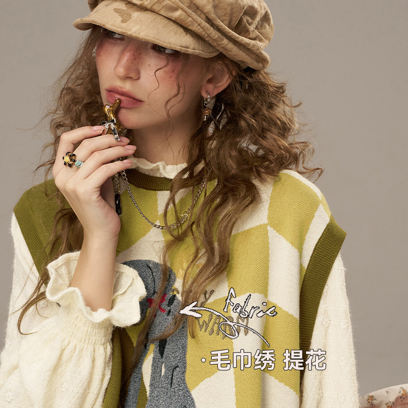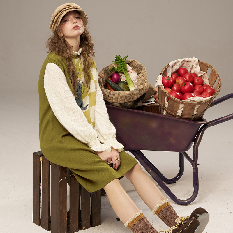 妖精的口袋趣味绣花假两件连衣裙女2025年秋冬新款宽松休闲裙子